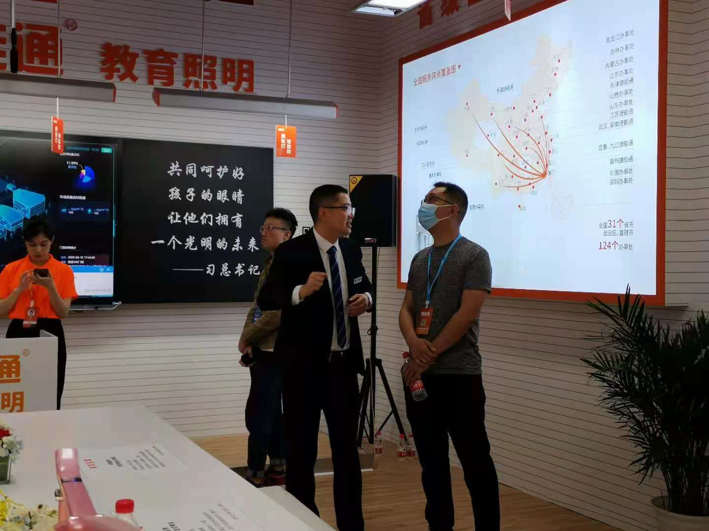 圖片8:科技公司李總聽取捷能通工作人員相關(guān)護眼燈的介紹