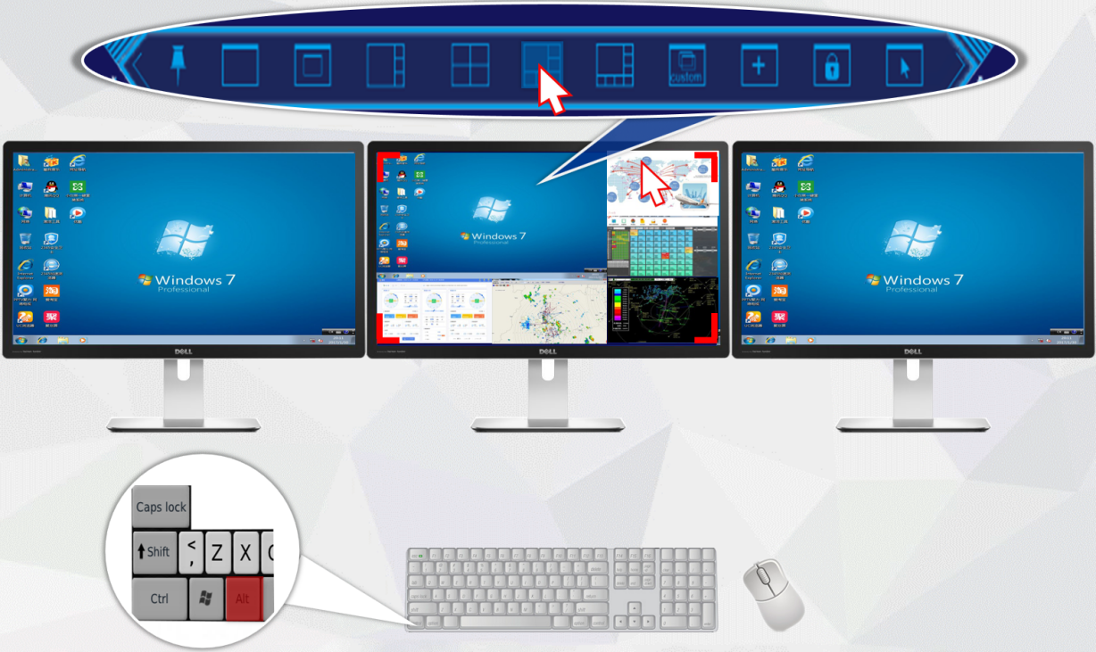 分布式坐席分屏模式可自由切換,并且每個(gè)漫游開窗的信號(hào)源都可以進(jìn)行雙擊放大直接操作該電腦的一切功能,再次雙擊切換回多個(gè)小窗口監(jiān)控模式。