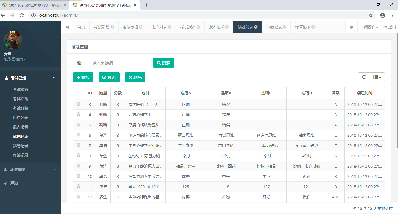 圖3 - 后臺(tái):題目數(shù)據(jù)管理